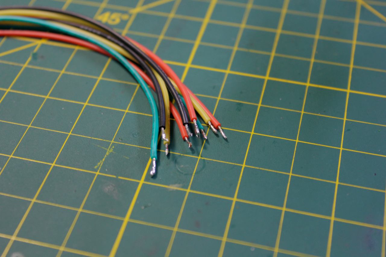 Here you can see the pins where the wires get soldered. Notice the gap at the bottom where there is no pin. Use this to orient yourself when selecting the pins to solder, it's easy to get mixed up.