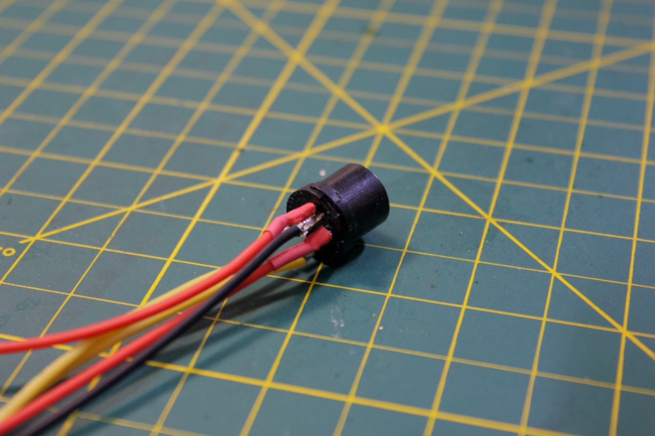 Finally, touch the solder iron to the pin and wire while they're touching and they'll form a secure connection. Again, put some shrink tube around the 5V connector(s).