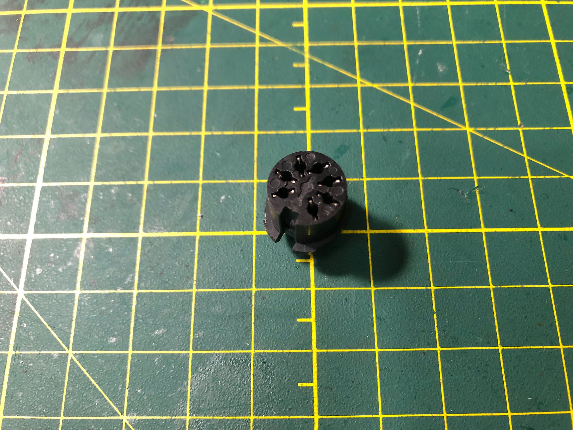Next up, the DIN plugs! This is the end that goes into the Commodore. To get the sheath off, bent the little tab down into the center of the plug, then stick something inside from the 'wire end' to push the fitting out. It's tight!