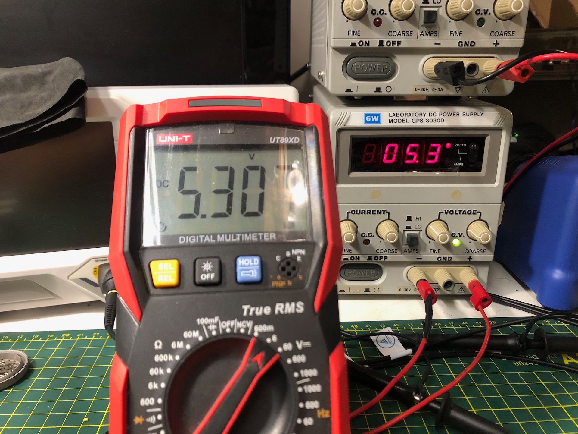 I'm using an adjustable bench power supply. If you don't have one, try plugging in your Commodore power supply for this step. Measure the voltage at the 5V in and 5V out. The 5V out could be up to 0.1V lower.