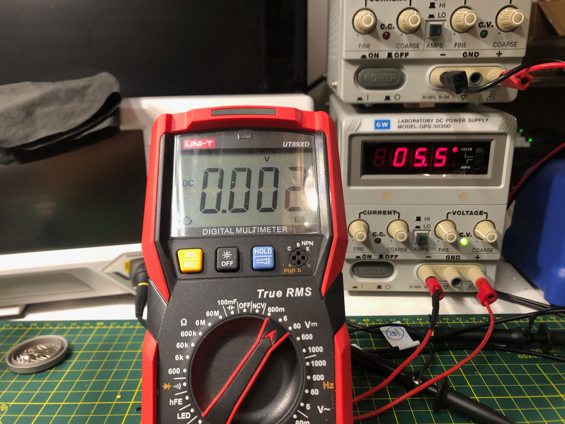 I bumped the voltage to 5.5V and now it's not allowing any voltage to pass through. Great! This particular unit cut off at 5.43V. Due to variations in the resistor values, I've seen values from 5.39V to 5.43V.